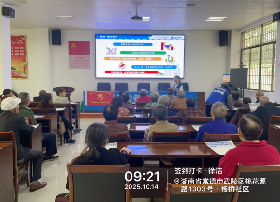 开展“常德市蓝马甲智慧助老”公益课堂活动,举办网络安全讲座,通过案例分析、模拟演练等方式,提高老年人的防范意识。为辖区老年人普及反诈骗知识和科学养生常识,吸引了众多老年人参与。