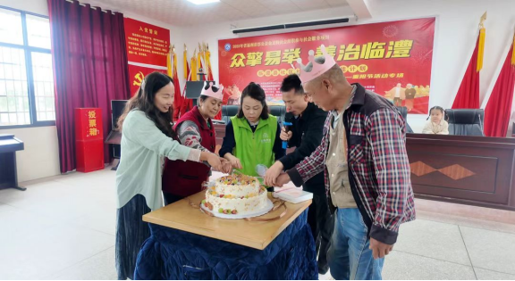 10月29日,临澧县望城街道看花村一场以“孝亲敬老 情暖乡村”为主题的重阳节活动温馨上演。活动在经典的《黄梅戏串烧》中正式拉开帷幕,演员们用热情的表演传递着对老人们的美好祝愿,现场掌声、笑声此起彼伏。在套圈游戏环节,老人们踊跃参与,现场充满了欢乐祥和的氛围。村里还为当月过生日的老人们准备了特别的集体生日会。活动现场,医护人员耐心为老人们测量血压、检查身体,解答健康咨询;理发师细致地为老人修剪头发,让老人以清爽的面貌迎接重阳佳节。